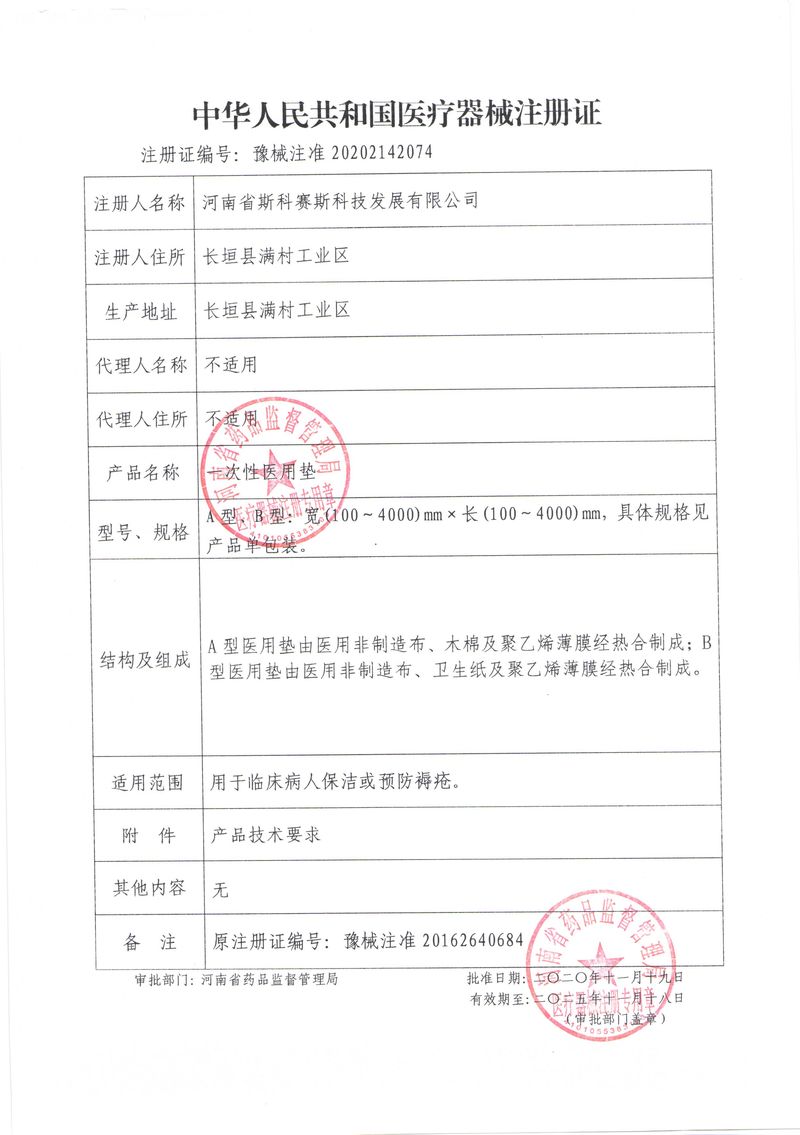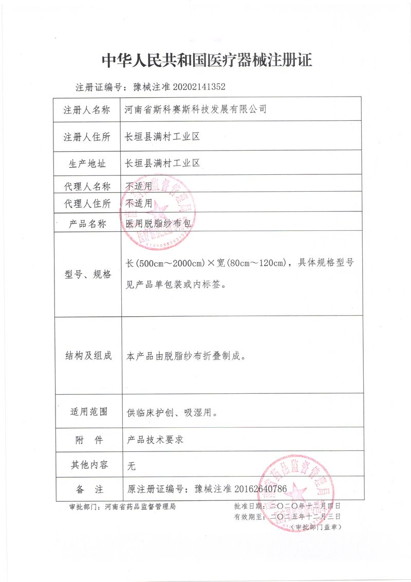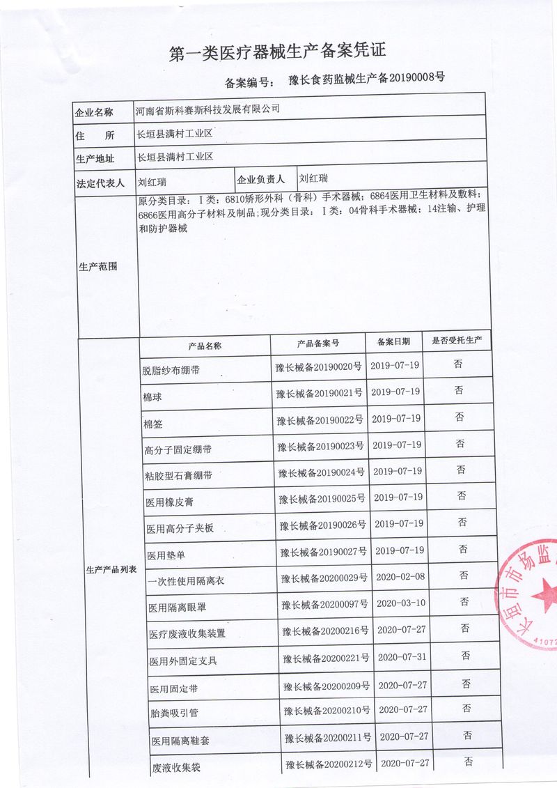 河南省斯科賽斯科技發(fā)展有限公司創(chuàng)建于 2011 年,位于“中國醫(yī)療耗材之都”- 河南省長垣縣,西臨 308 省道,南靠新菏鐵路,北依長濟(jì)高速,交通便捷,經(jīng)濟(jì)發(fā)達(dá),環(huán)境優(yōu)美。斯科賽斯積極進(jìn)入醫(yī)療健康和服務(wù)領(lǐng)域,秉承為用戶創(chuàng)造價(jià)值的理念,專注于醫(yī)用耗材解決方案的研發(fā)和運(yùn)營,并為用戶提供完善的產(chǎn)品解決方案;  斯科賽斯主要生產(chǎn)醫(yī)用麻醉系列、醫(yī)用高分子系列、醫(yī)用敷料包系列、醫(yī)用無紡布系列、醫(yī)用防護(hù)系列、醫(yī)用脫脂棉系列、生物材料制品類等七大類、100 多個(gè)品種、400 多個(gè)規(guī)格的產(chǎn)品。公司占地面積約 30000 平方米,建筑面積20000 平方米,擁有 10 萬級(jí)的凈化車間總面積 10000 平方米。擁有國際先進(jìn)水平的生產(chǎn)設(shè)備和檢測儀器,技術(shù)裝備精良,檢測手段完善,為醫(yī)療行業(yè)的不斷發(fā)展進(jìn)步提供保障。公司順利通過 ISO9001、ISO13485 質(zhì)量管理體系認(rèn)證。  斯科賽斯堅(jiān)持研發(fā)高科技新產(chǎn)品,力爭在醫(yī)療器械關(guān)鍵領(lǐng)域取得技術(shù)和研發(fā)的重大突破;立足國內(nèi)和國際兩個(gè)市場,逐步實(shí)現(xiàn)管理理念、經(jīng)營機(jī)制、人力資源、技術(shù)、產(chǎn)品、市場等全方位對(duì)接,提高企業(yè)的核心競爭力;過去的歲月里,斯科賽斯砥礪前行,誠信務(wù)實(shí),銳意進(jìn)取,不斷創(chuàng)新,用自己的睿智和辛勞,以富有責(zé)任感的使命,在探索中追求,在追求中超越,致力于成為值得信賴的醫(yī)療用品生產(chǎn)企業(yè)!在未來的日子里,斯科賽斯將一如既往豪情滿懷,信心百倍,攜手并肩,執(zhí)著追求,向更高的的目標(biāo)前進(jìn),鑄造新的輝煌!